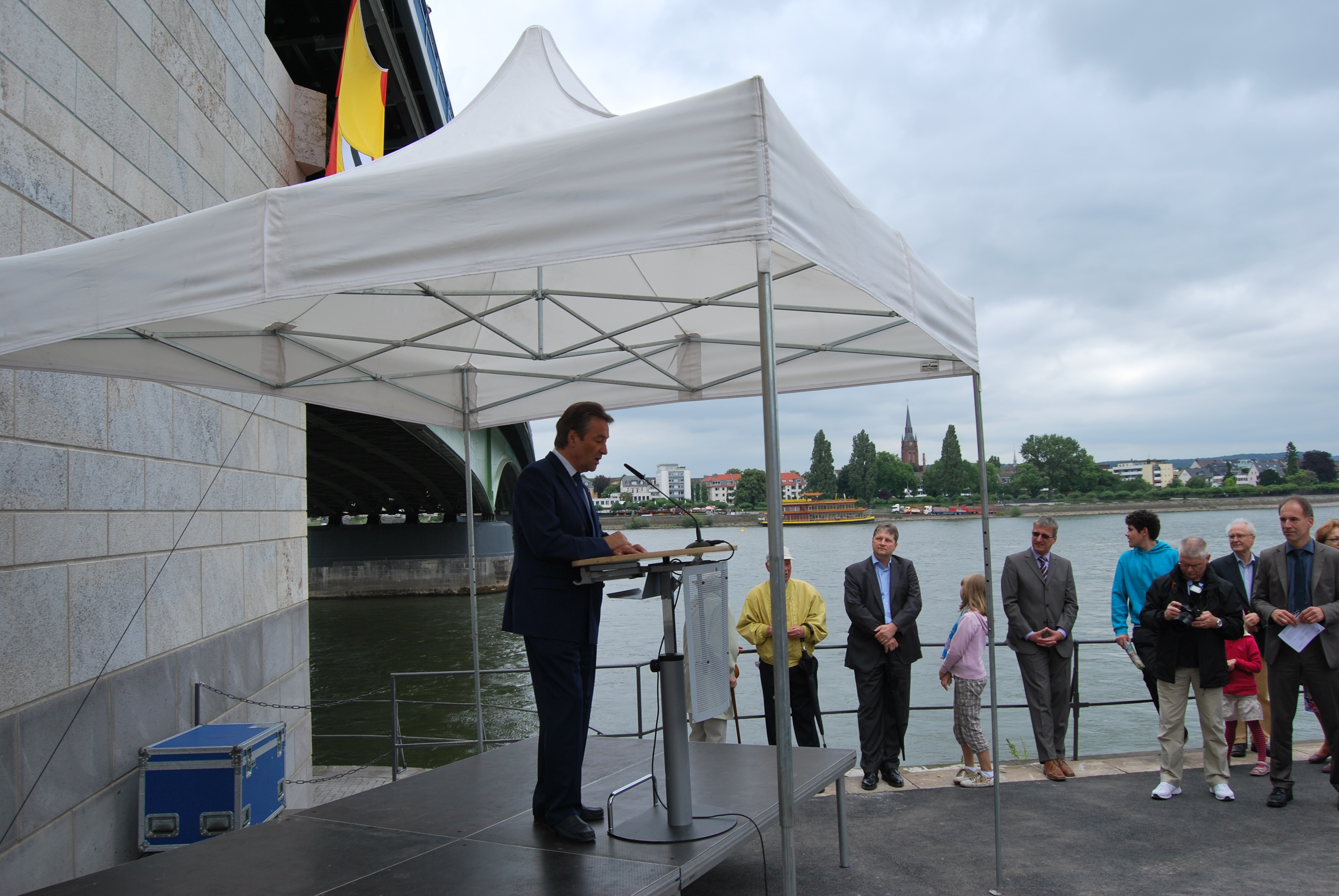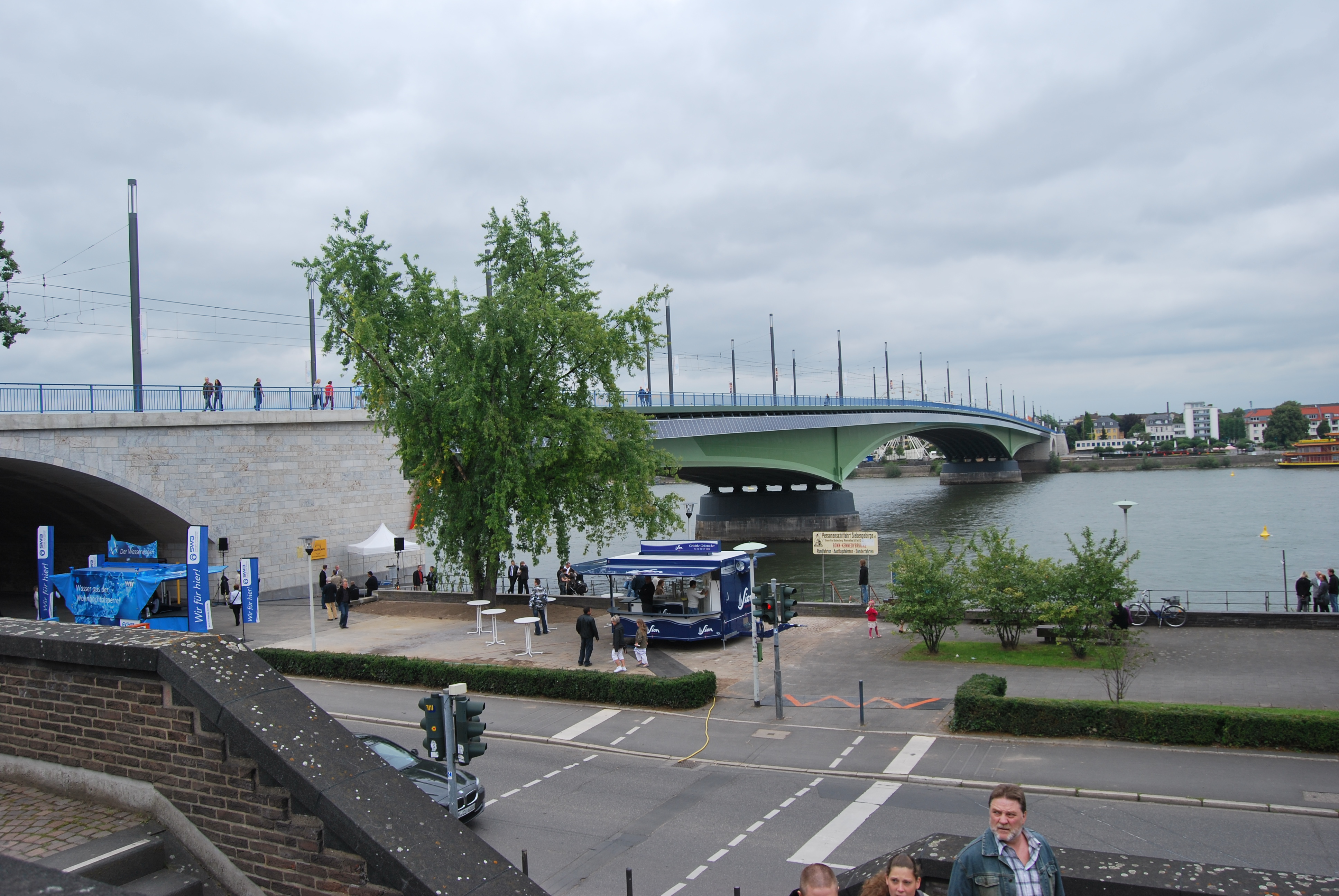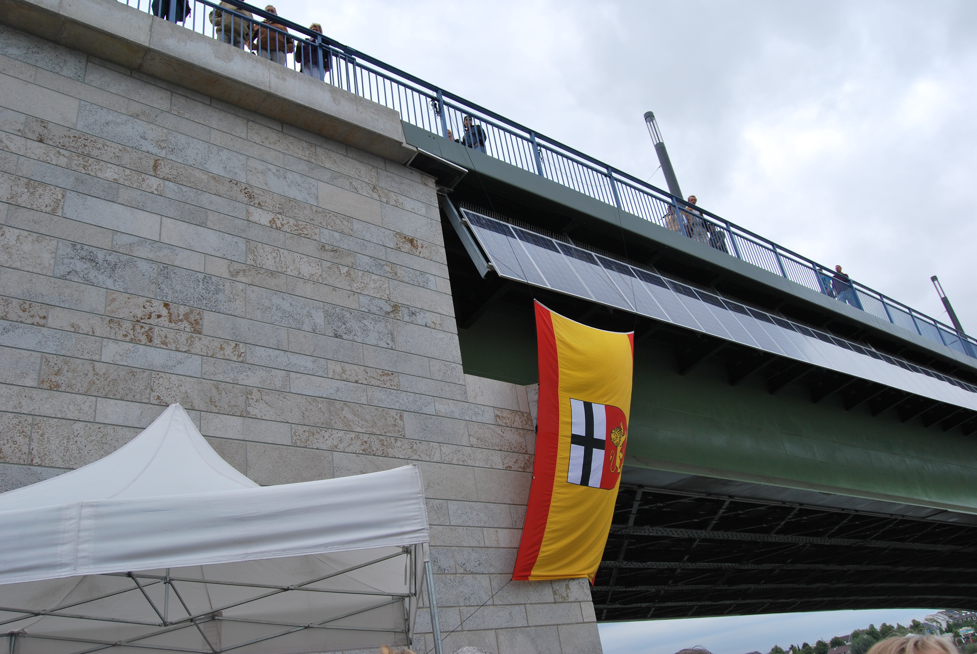 Die Bauzeit konnte leider nicht eingehalten werden, das lag aber an verschiedenen Gründen, nicht alleine an der Verwaltung. Der von einigen negativ eingestellten Kommunalpolitiker vorausgesagte ewige Stau oder sogar "Verkehrskollaps" auf der Brücke während der 4 jährigen Bauphase ist nicht eingetreten und so konnten die Kinder aus den verschiedensten Schulen die Fahnen der Vereinten Nationen für die UN-Stadt Bonn, zur Einweihung auf die BRücke tragen.