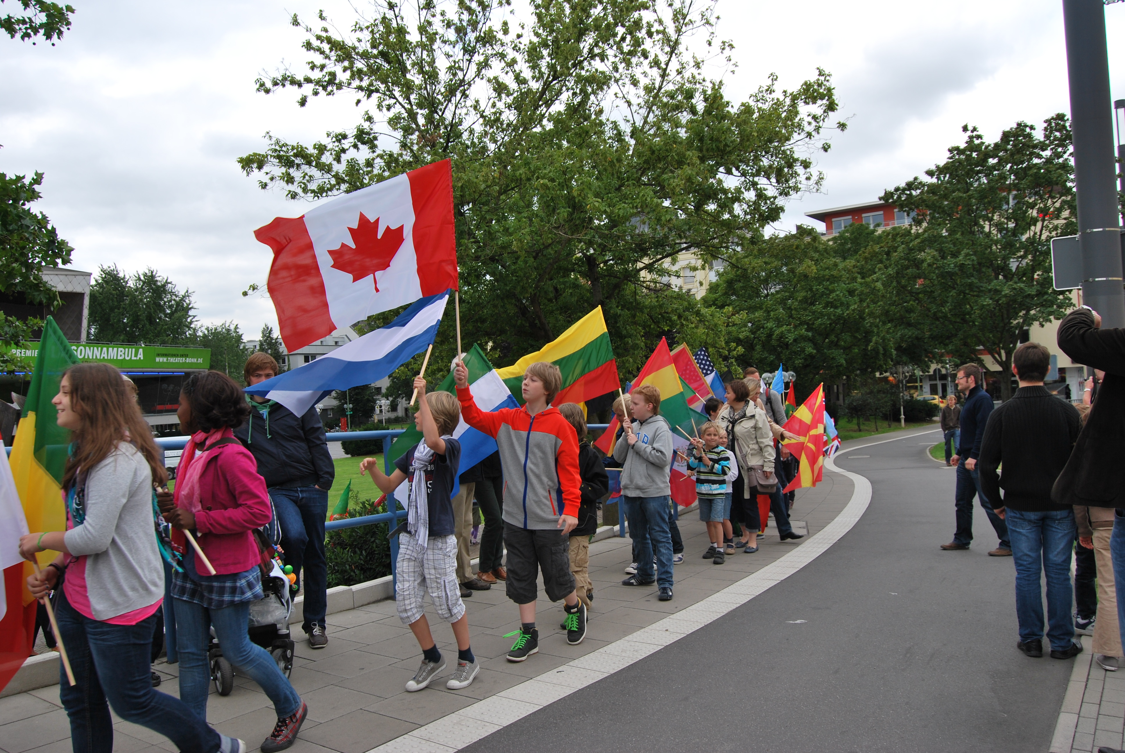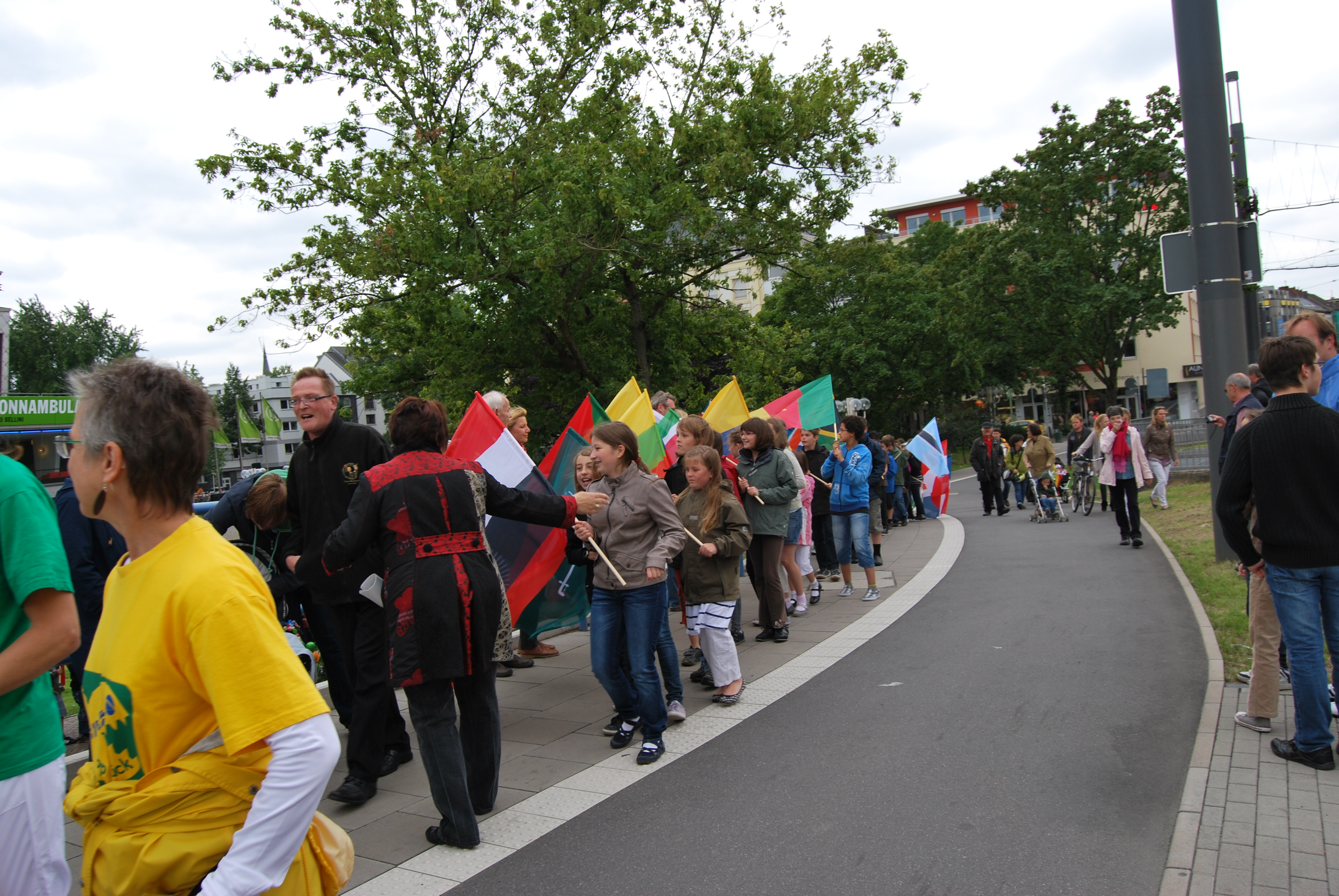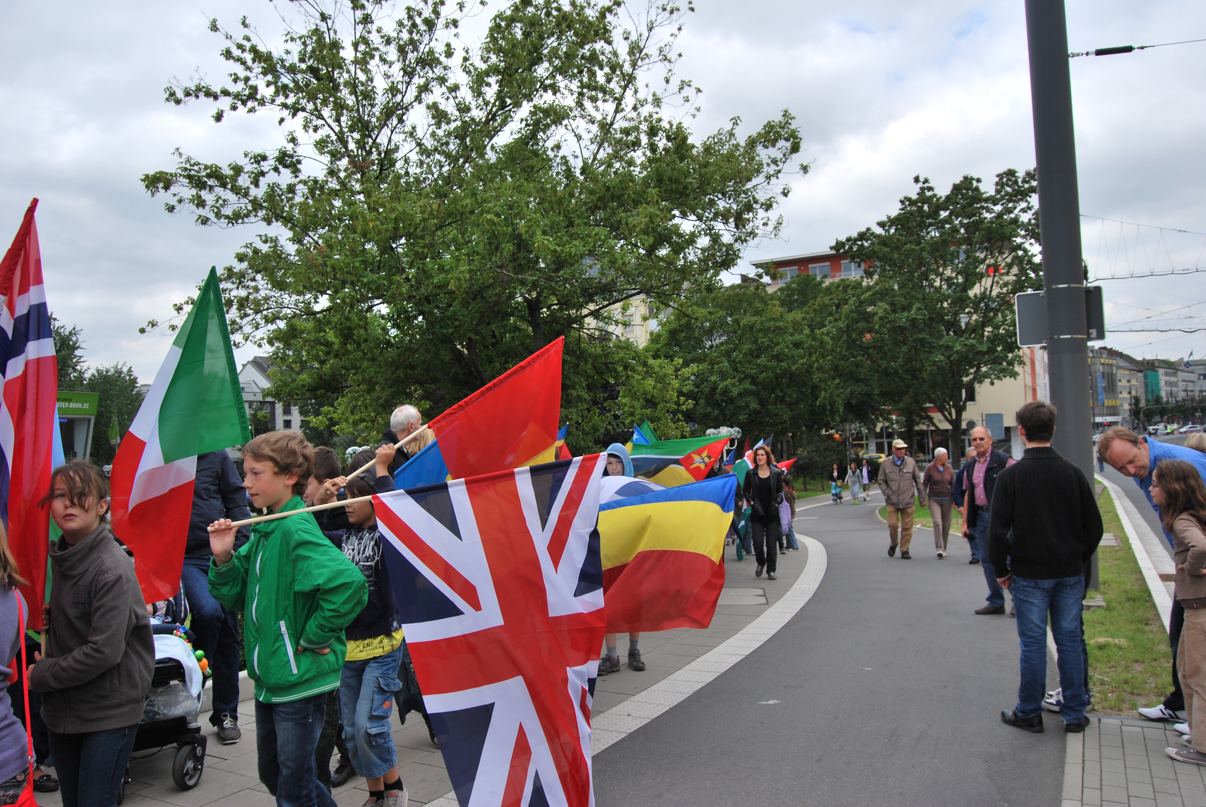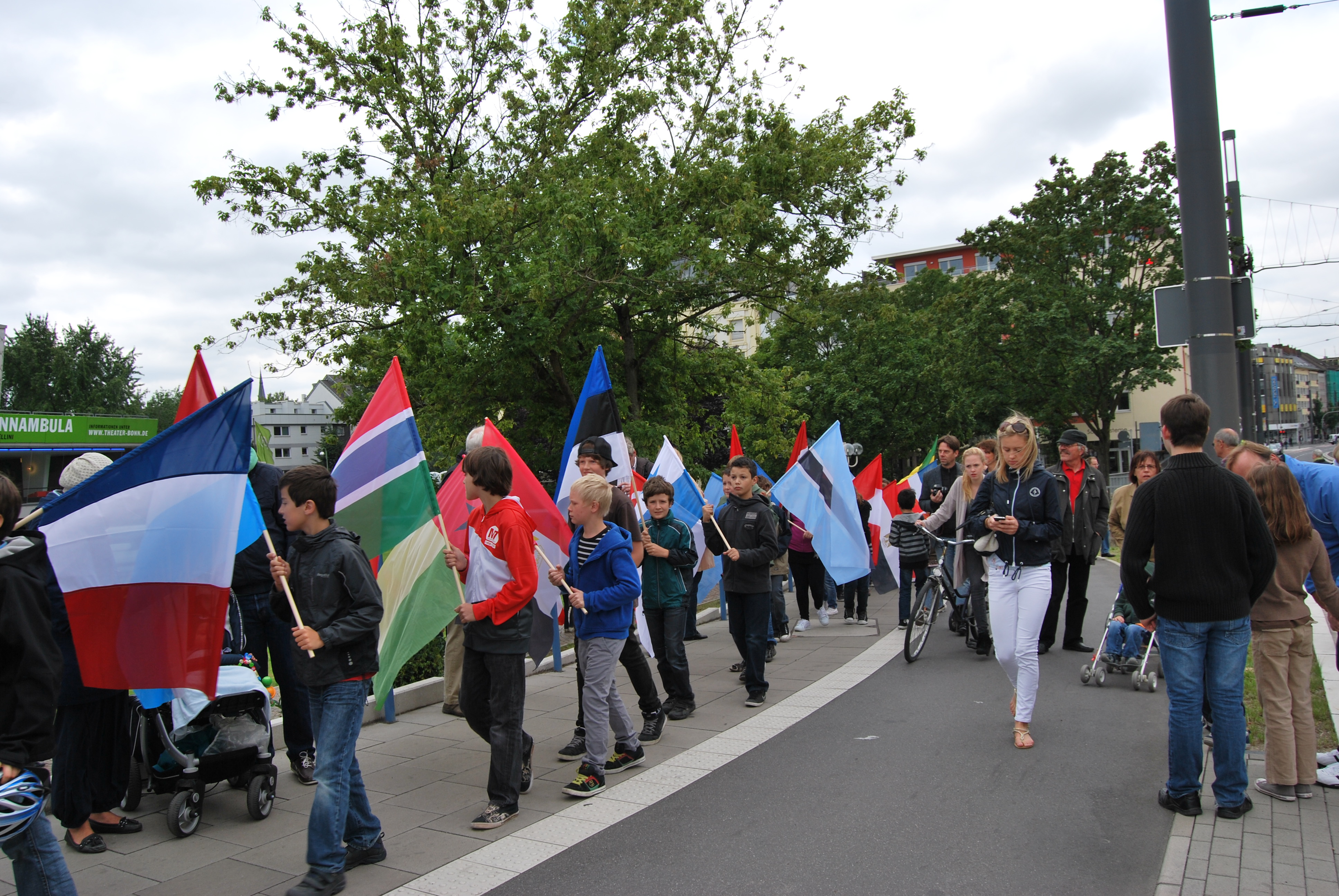 Die Bauzeit konnte leider nicht eingehalten werden, das lag aber an verschiedenen Gründen, nicht alleine an der Verwaltung. Der von einigen negativ eingestellten Kommunalpolitiker vorausgesagte ewige Stau oder sogar "Verkehrskollaps" auf der Brücke während der 4 jährigen Bauphase ist nicht eingetreten und so konnten die Kinder aus den verschiedensten Schulen die Fahnen der Vereinten Nationen für die UN-Stadt Bonn, zur Einweihung auf die BRücke tragen.