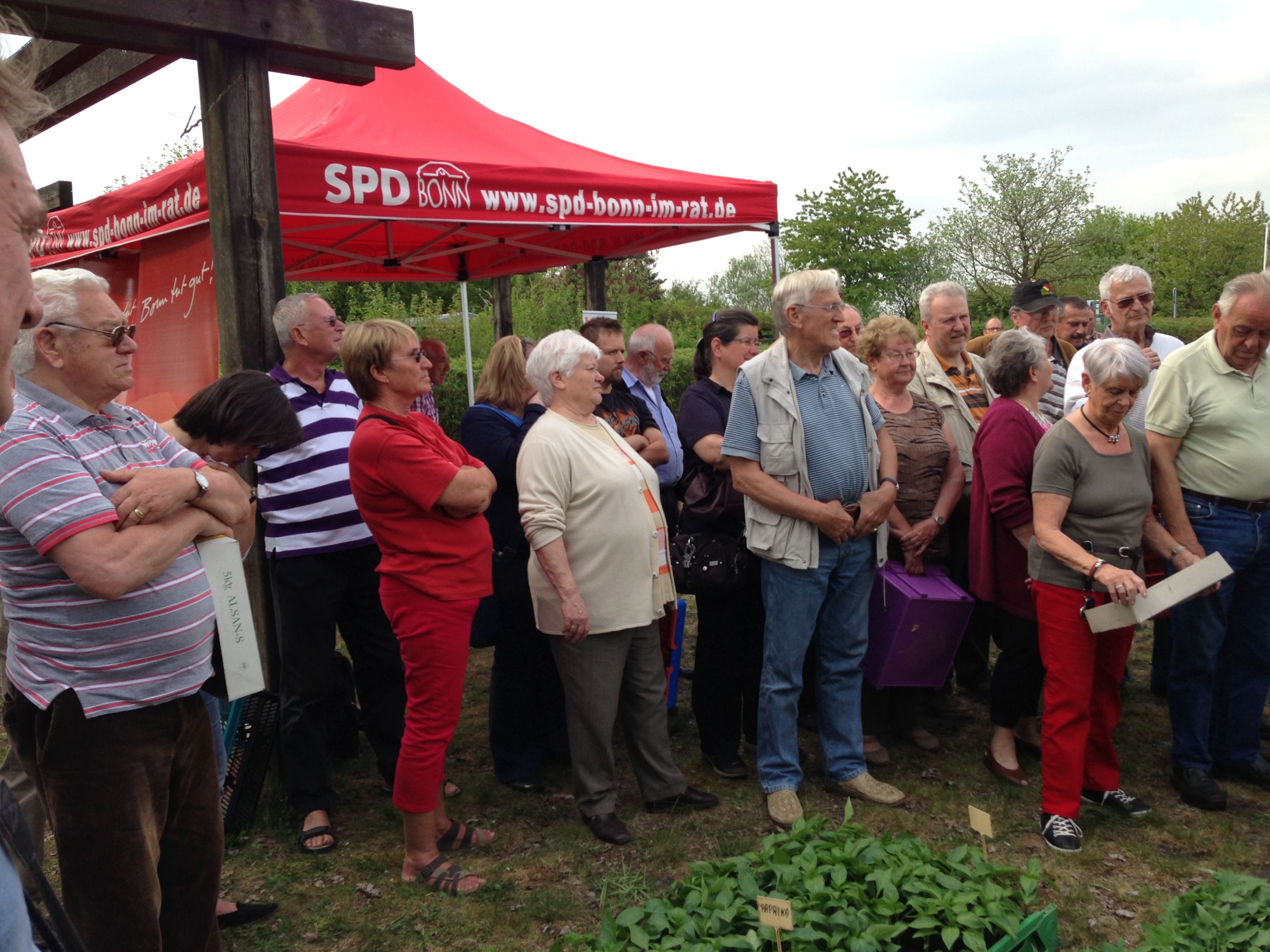 "Rotes", Paprika-, Peperonni- und Tomatenpflanzen von den Roten für die Kleingärtner gab es wieder am 3. Mai 2013 von der SPD. Mit dabei OB Jürgen Nimptsch, MdB Uli Kelber, MdL Felix von Grünberg und mehrere Spd Mitglieder des Stadtrats. 450 Pflanzen waren in weniger als 5 Minuten vergeben.